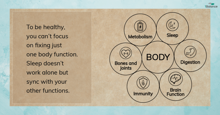 The fact is, sleep is connected with everything else that you do. In fact, everything is connected to everything else. Your body functions as a connected whole. It’s a delicate balance, but because it’s all connected it is also remarkably resilient to the imbalances that we put our body through for most of our lives. It adjusts brilliantly, and we never know about it, till the imbalances add up to a point where the body just cannot cope up. Thats thousands of years of evolution.