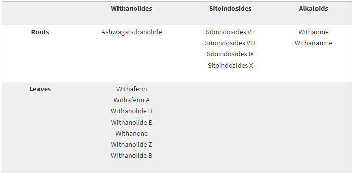 Withanolide A, sitoindosides, and acylsterylglucosides are the main anti-stress agents at work.
