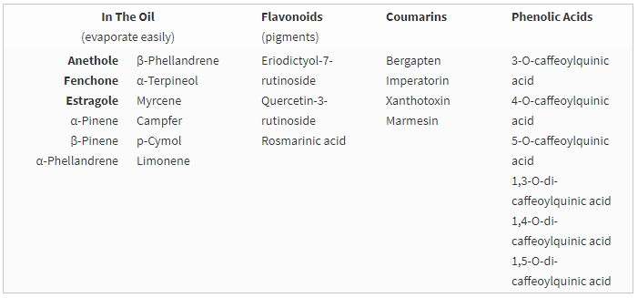 - A number of fennel compounds, like limonene and myrcene, can support your internal antioxidant system. This improves the free radical situation and strengthens your liver’s resistance.