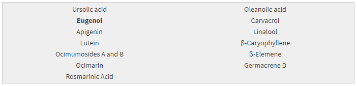 Eugenol, a phenolic compound, deserves the most accolades. But the rule of thumb for herbs, or any natural food, though is that whole is always better than isolated active ingredients; so think of it as a team of compounds working together.